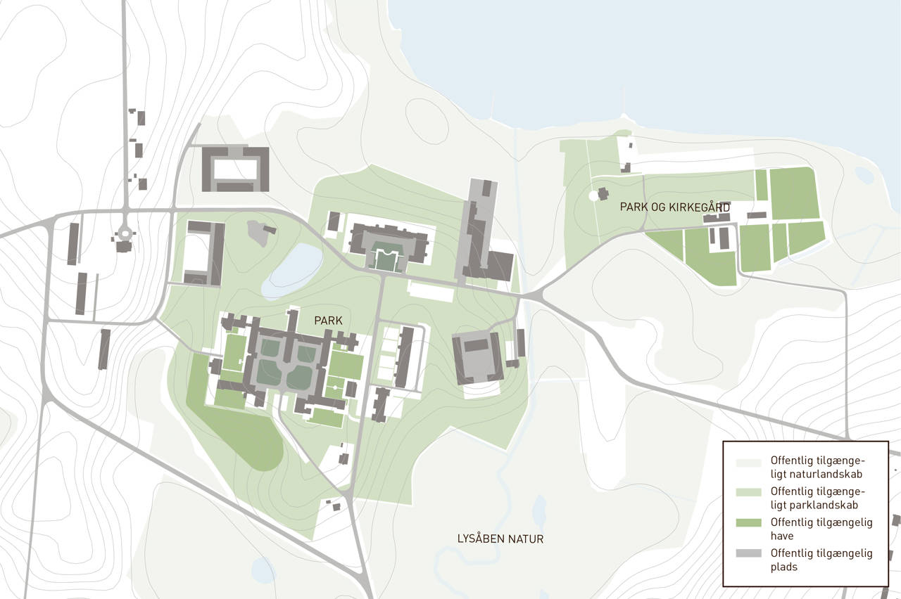 Det offentligt tilgængelige parklandskab skal i fremtiden danne ramme om fællesskaber og rekreation for bydelens beboere, erhvervsdrivende mfl. samt for alle besøgende borgere.