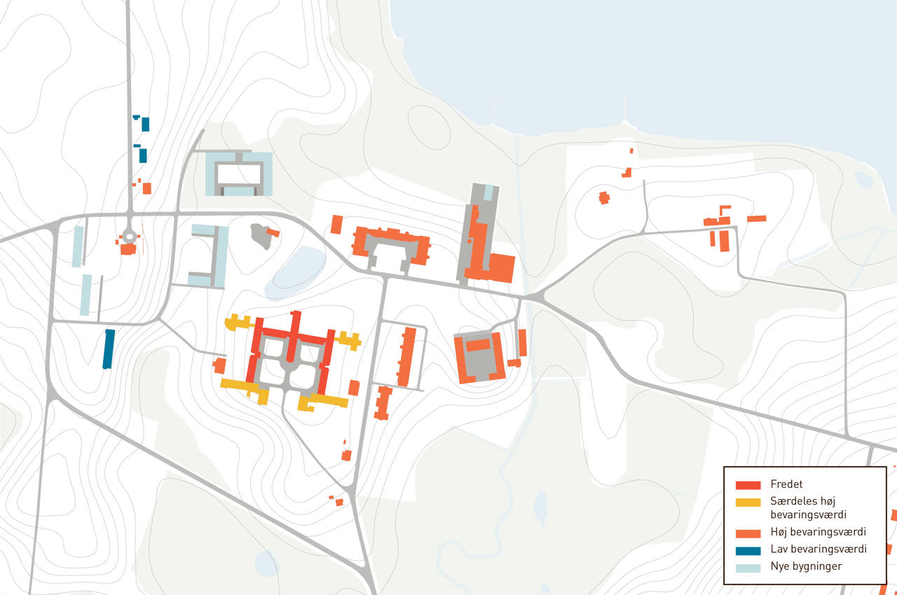 Bygningsanlægget skal omdannes fra psykiatrisk hospital til blandet byområde, ved en nænsom transformation i respekt for det oprindelige anlæg. Eksisterende bygninger bevarer deres særlige kvaliteter og nye bygninger indordner sig det samlede anlægs arkitektoniske principper og de bestående landskabelige forhold.